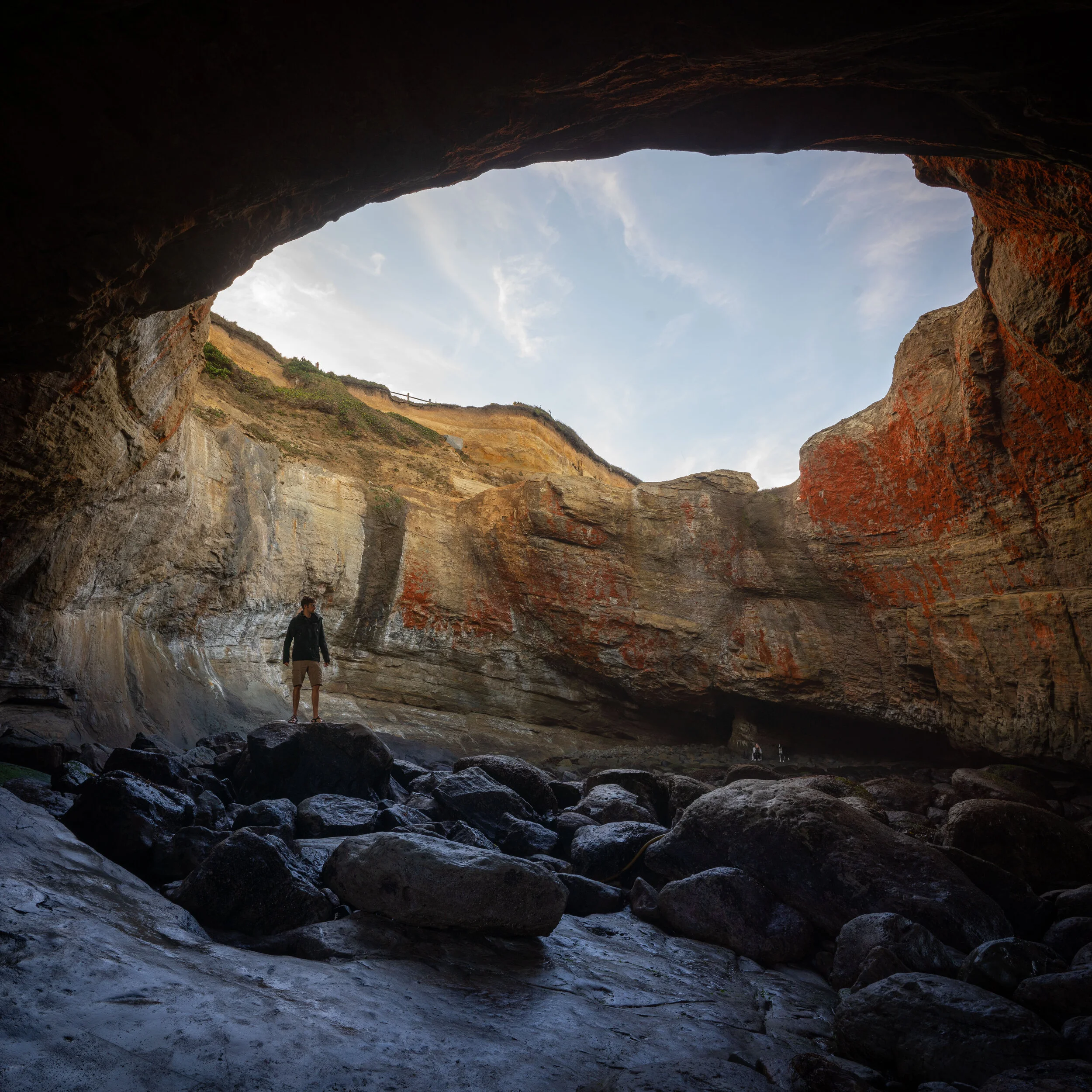 And this is where the fun began. The place was straight magic. The walls had this red edge to them that looked so intense... Contrast that with the blueish glow from the early morning waves and the whole thing was set up to be a red/cyan masterpiece.