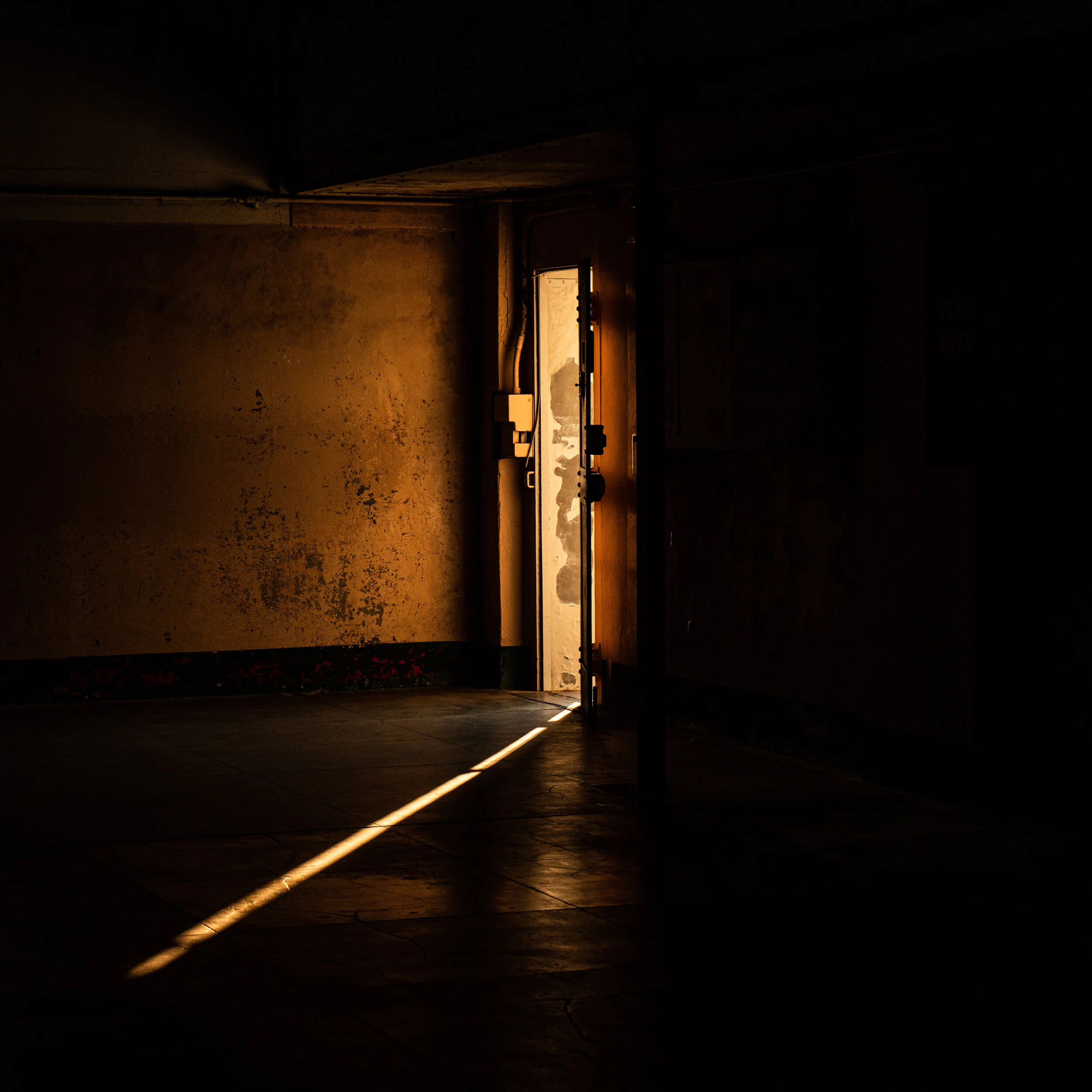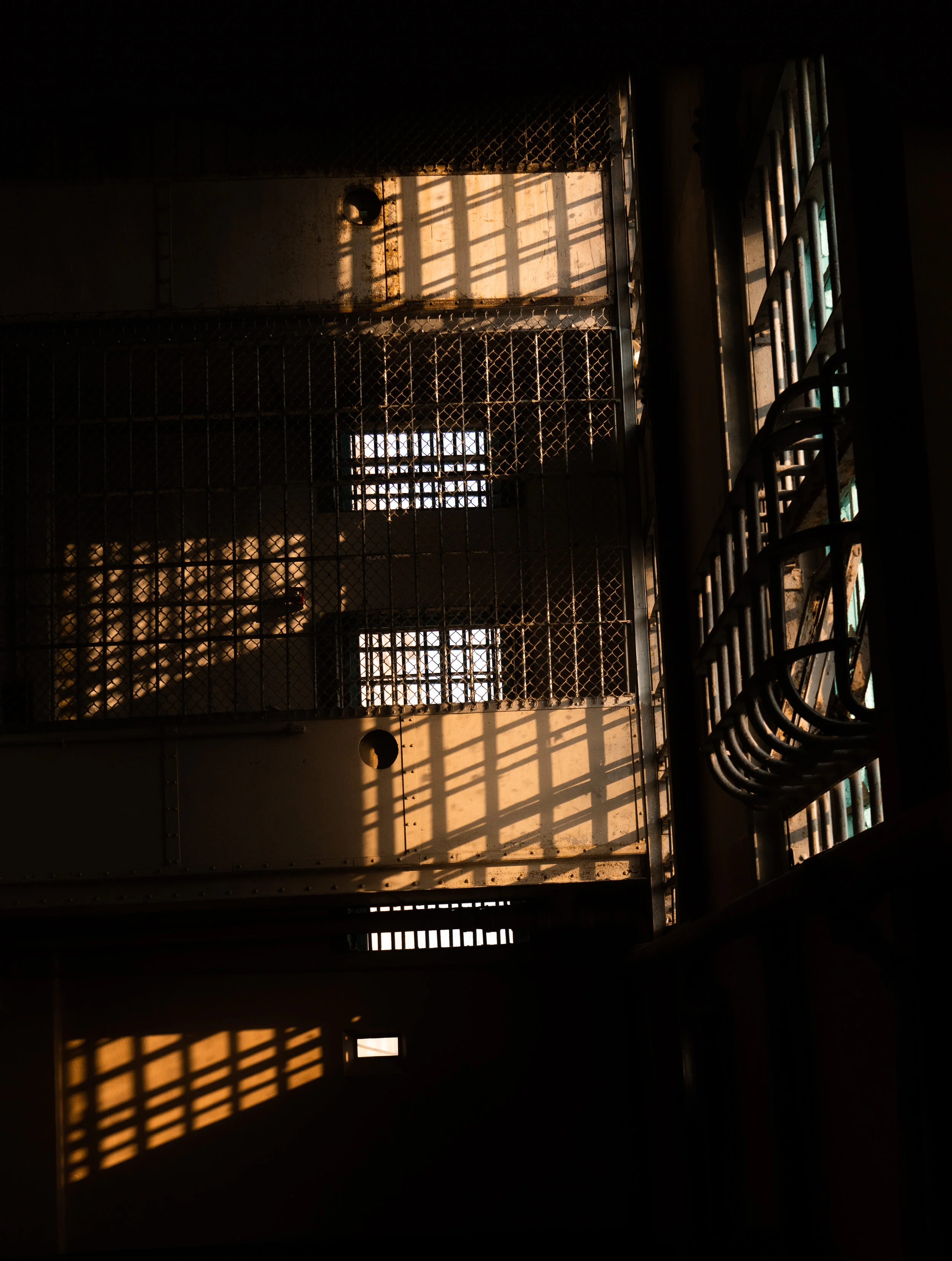 That's where I snagged ALL of these shots, and it's also when the lighting is absolutely brilliant, at least for late summer, which is when we went. You'll get the soft haze drifting through the jail bars, illuminating strange patterns on the wall. It's quite abstract, really. Here's an example: