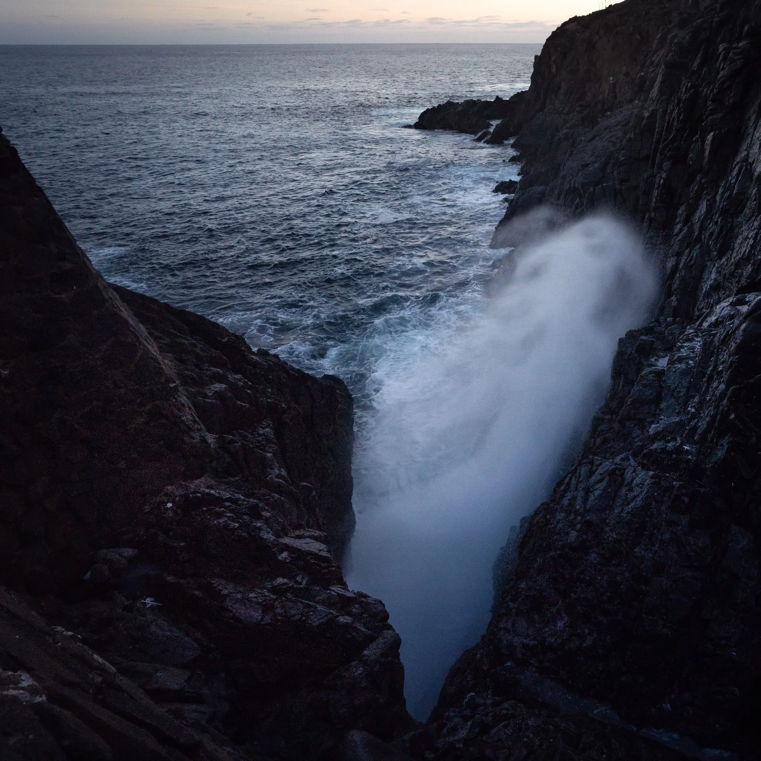 It took me a few minutes to figure out was actually happening. A (big) wave would smash into the cliff, then water would propel into the air like a steam engine on a train. We came a few hours before high tide, when it was a lot of water but not enough that we'd get soaked. (Which apparently happens if you come at high tide.)