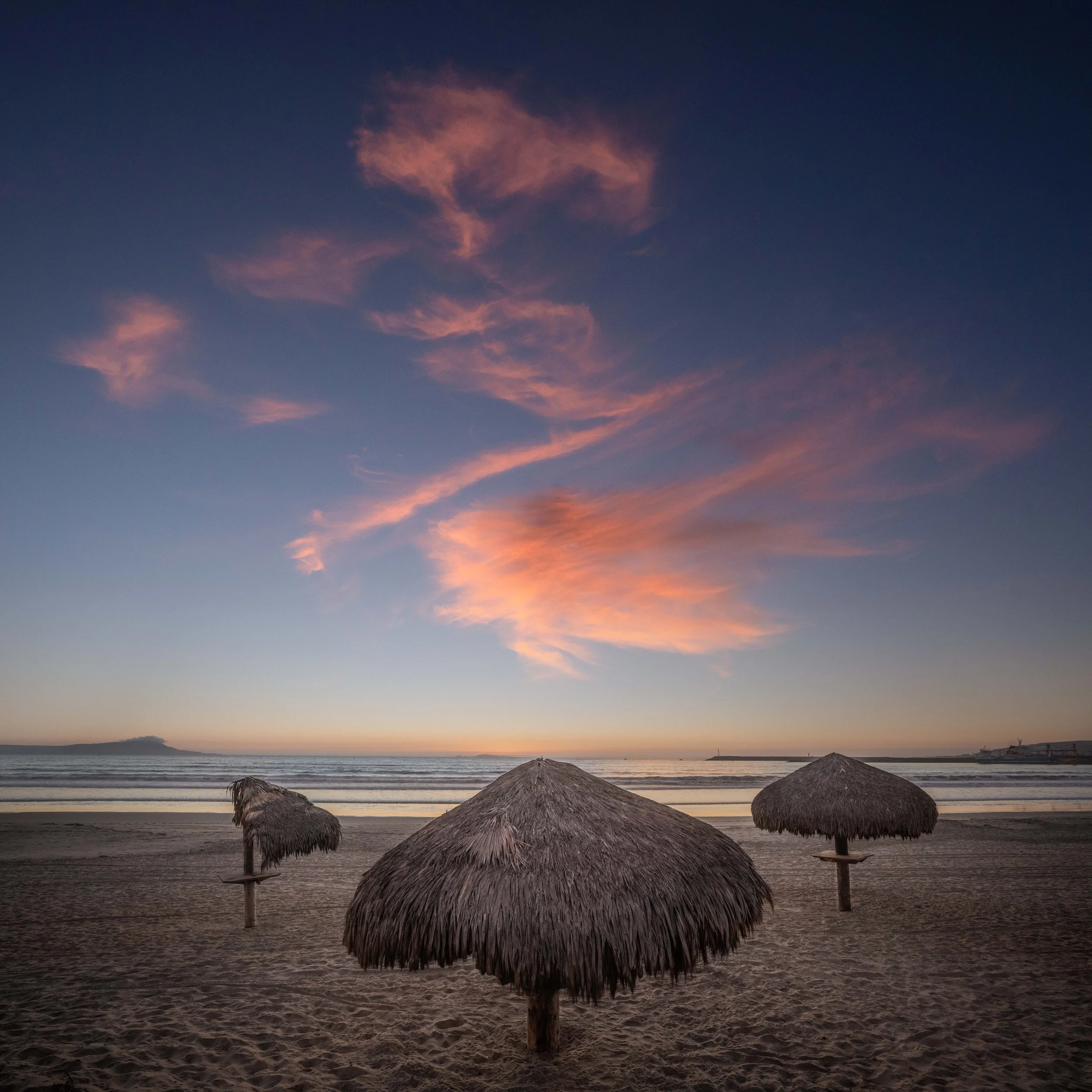 After about 30 frantic minutes of Googling for places around Ensenda (the town we were in,) I just zoomed into Google Maps. And that's when I discovered Malecón de Playa Hermosa. It looked like a pretty standard beach, but it had these weird canopy tent things.