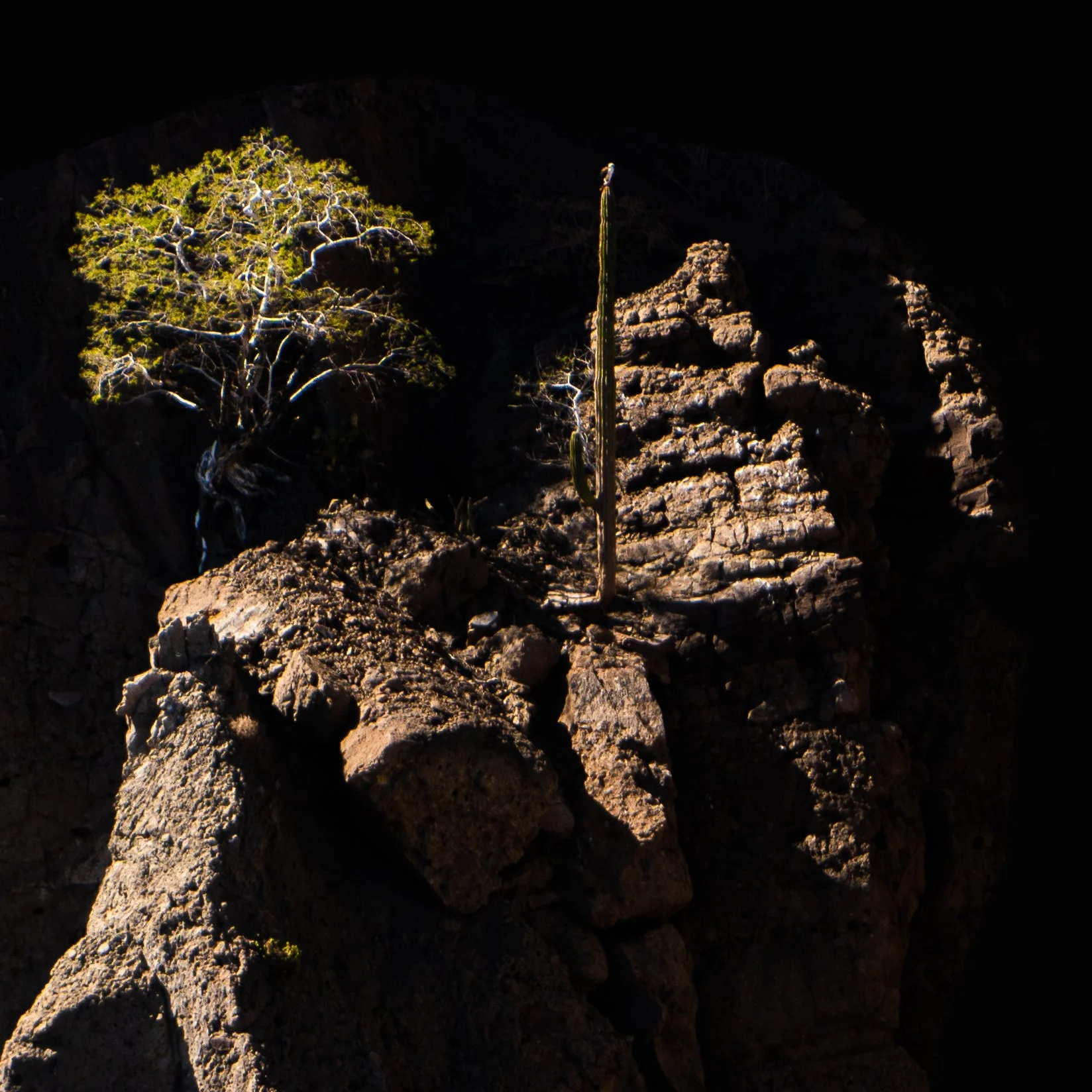 In addition to the whale shots, I got some nice minimalist shots of the island cliffs of Isla Danzante, where strange cacti were somehow growing right out of the rock. Here's my top three favorite shots:
