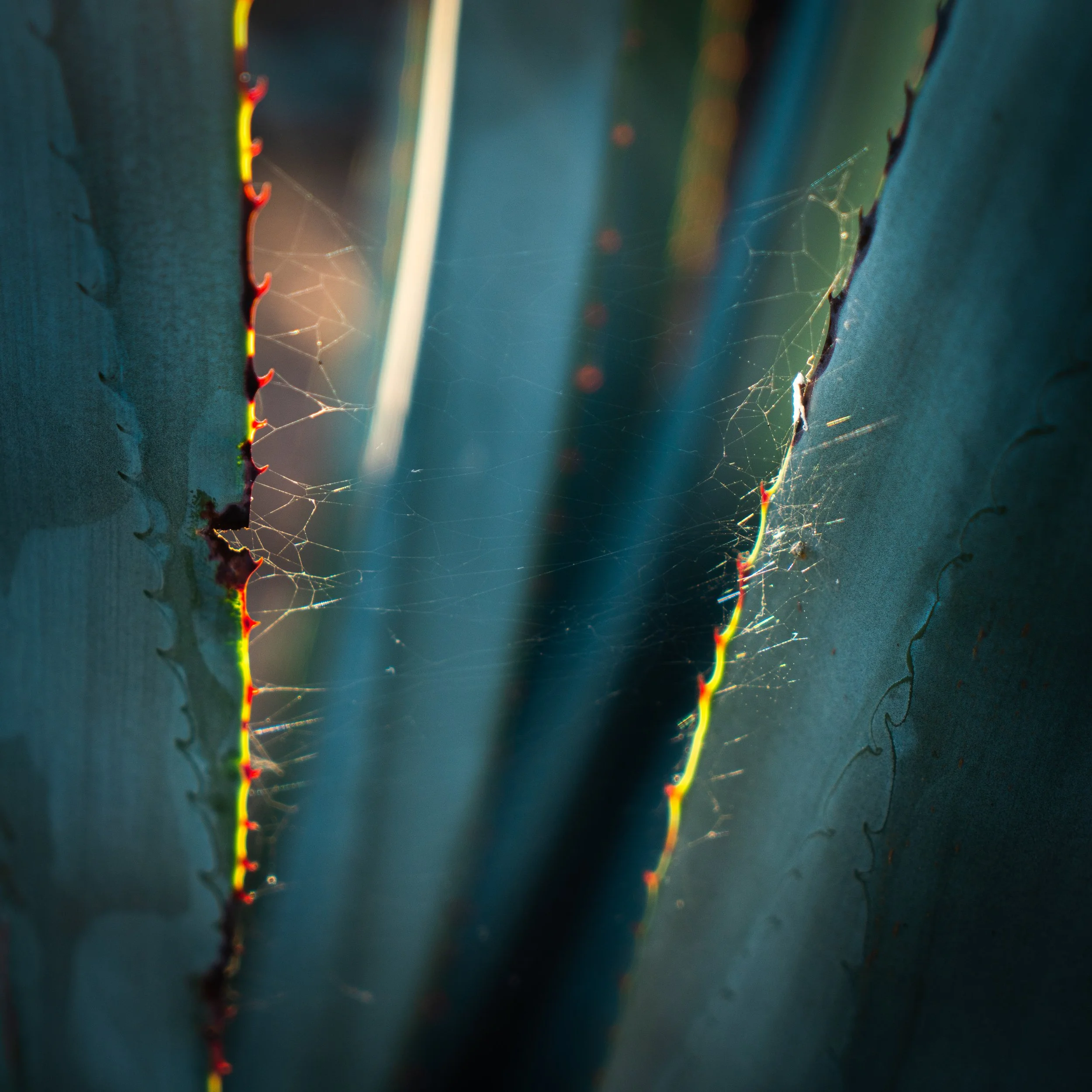 Which leads me to my final tip. If you're looking for a subject (for example, sharp edges on agave plants,) but can't make up your mind as to which one to photograph, look for one that STANDS OUT (i.e. this one with webs on it.) It'll take your subject to the next level.