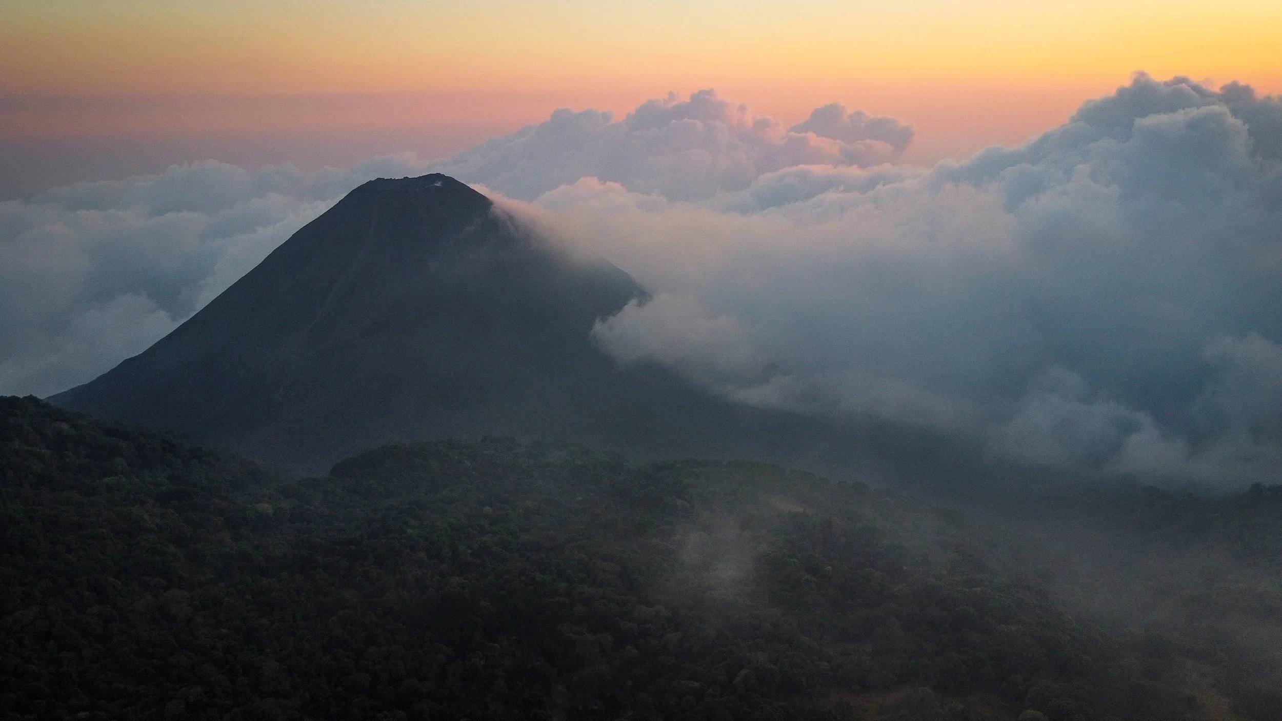 The sunset. Which was absolutely drop-dead gorgeous. Despite the eternally foggy afternoon, the light seemed to clear away at the perfect moment, and was hitting the neighboring volcano Izalco just right. It’s almost as if Mother Nature was like “Intricate, I’m so sorry you couldn’t hike the volcano even though you’re in an incredibly risky area, so here’s a beautiful sunset. Now get out your fucking drone before it’s gone.”