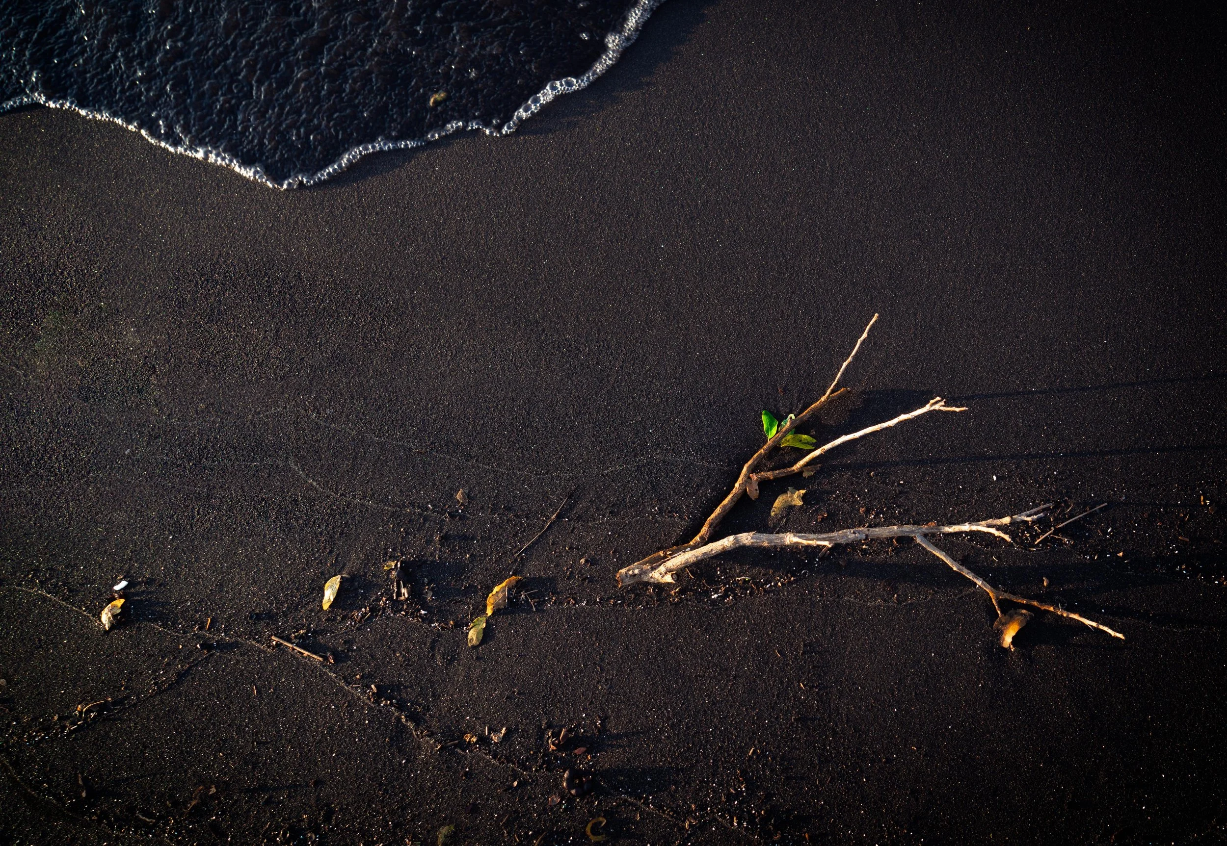 I looked down. My favorite thing about the ground here was the black sand, which was occasionally speckled with vibrant plants from the island. It was like a black canvas speckled with color splotches. This could be something…
