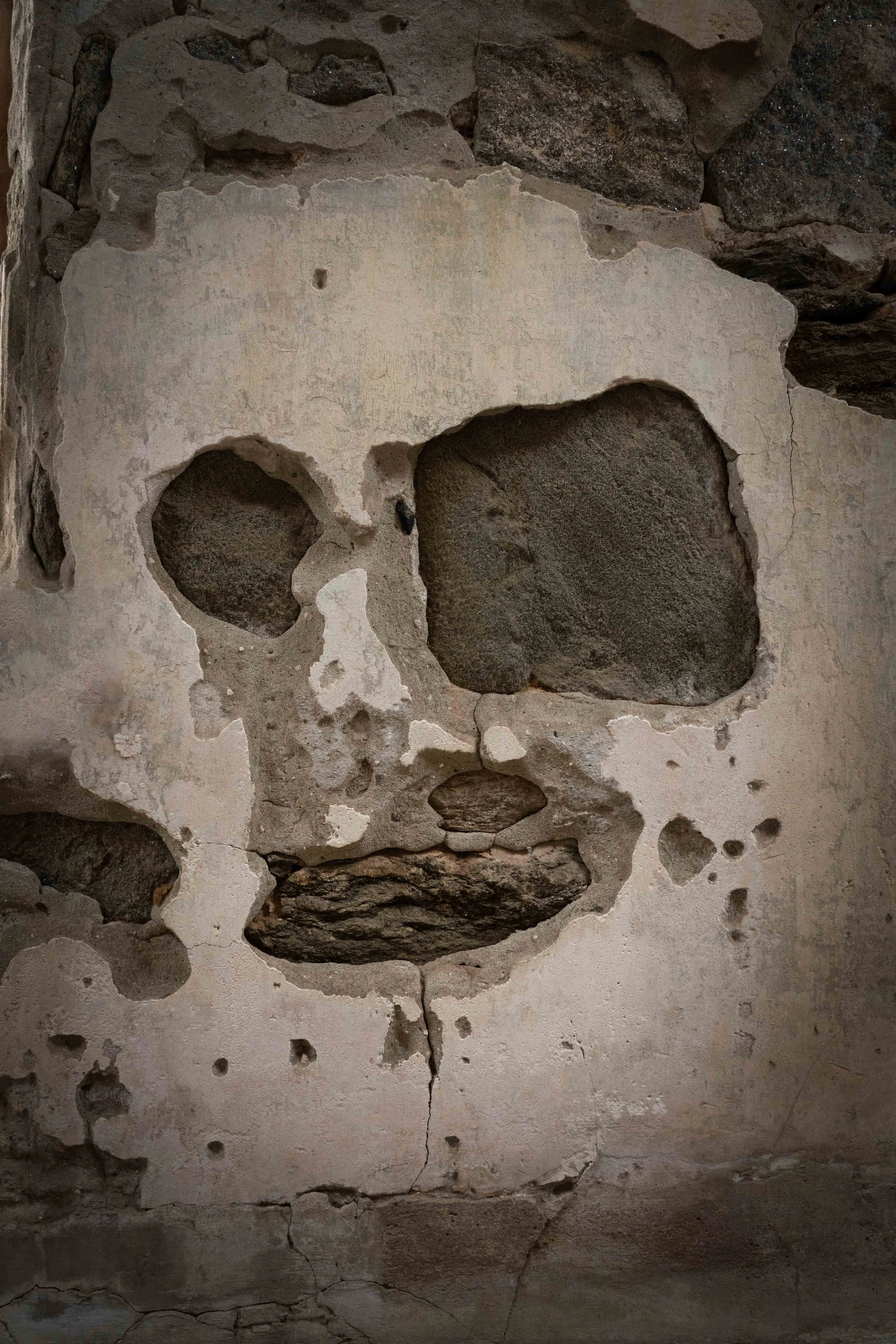 So, I applied my “cave photography” technique to the prison walls. AKA, look for shapes you recognize, and create an image out of them. And since my mind was latched into all the death here, I landed on this:
